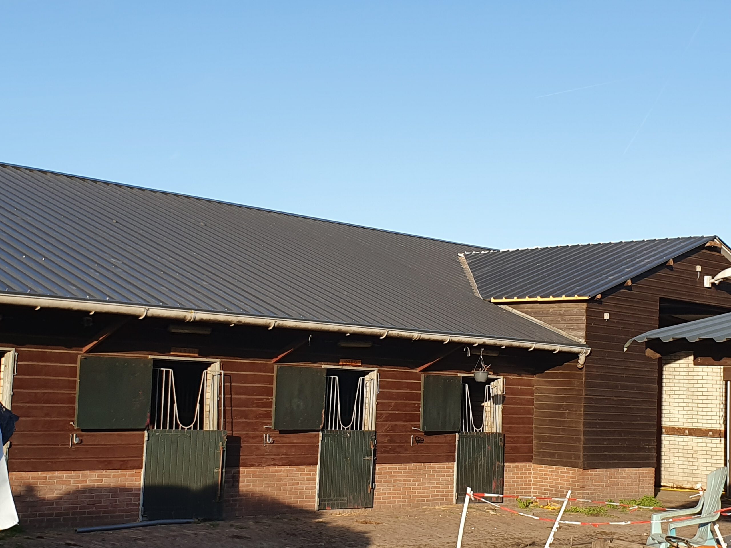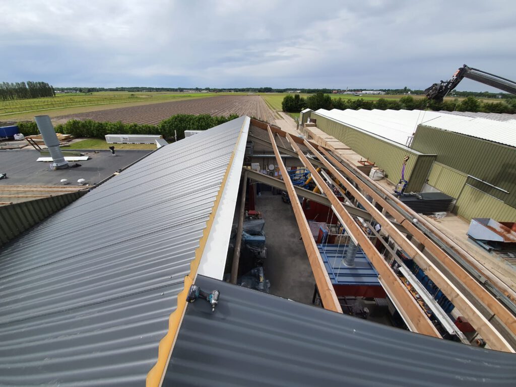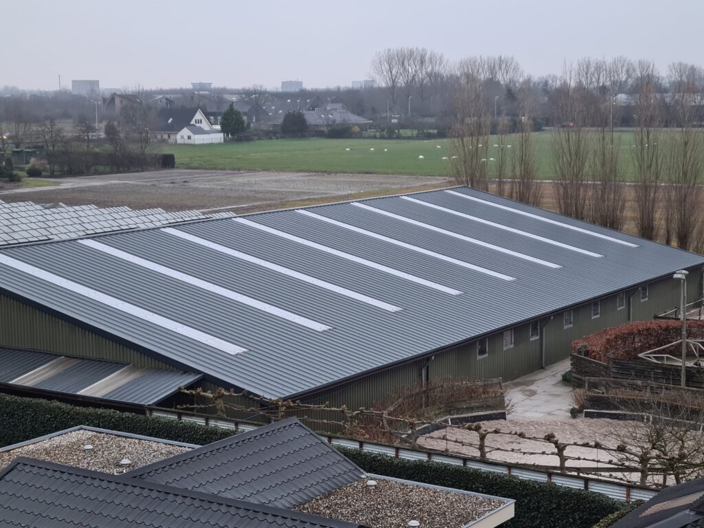 Zwaanshoek renovatie bedrijfspand 80 mm Sandwich golfplaat modelCruquius renovatie paardenobject60 mm Sandwich dak inclusief lichtstraten Zuidoost Beemster Renovatie paardenobject40mm Sandwich dak Broek in Waterland renovatie Koeienstal40mm sandwich dak inclusief licht/lucht nok Renovatie paarden object Cruquius Renovatie bedrijfspand Zwaanshoek